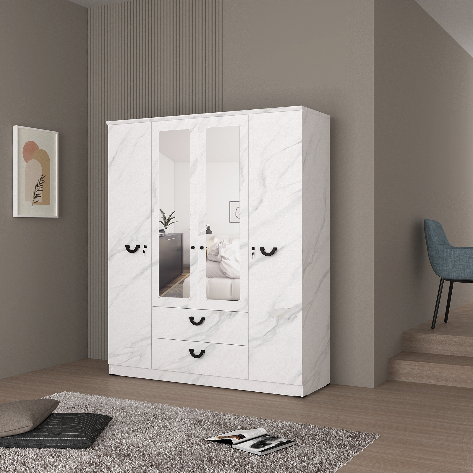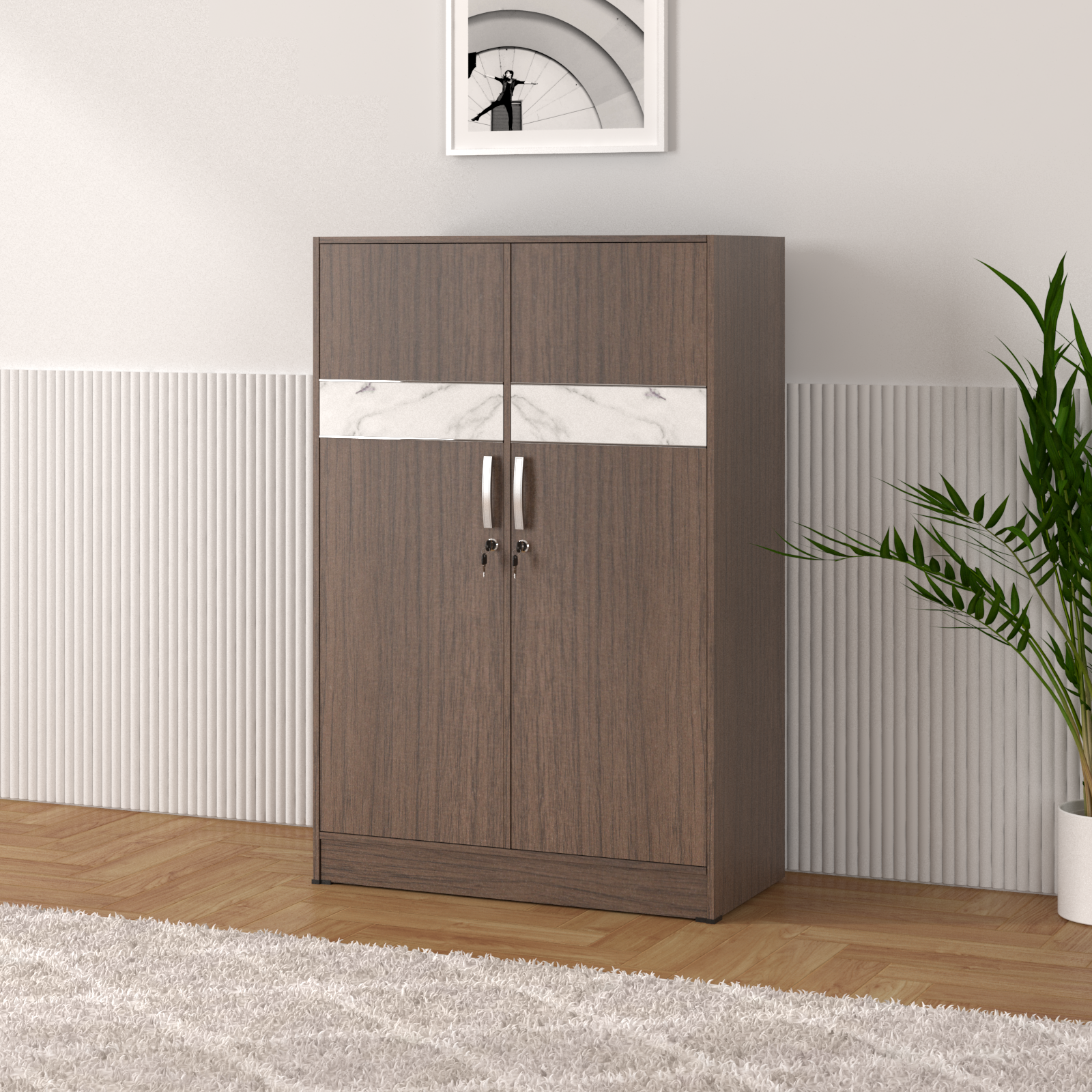 Penyimpanan barang juga akan aman karena lemari Castor ini disertai dengan kunci.