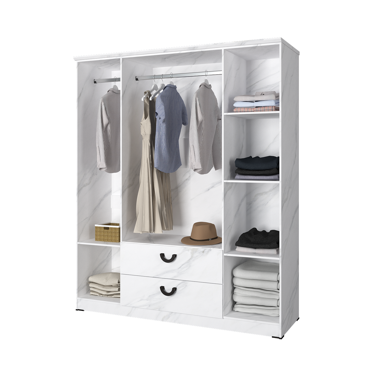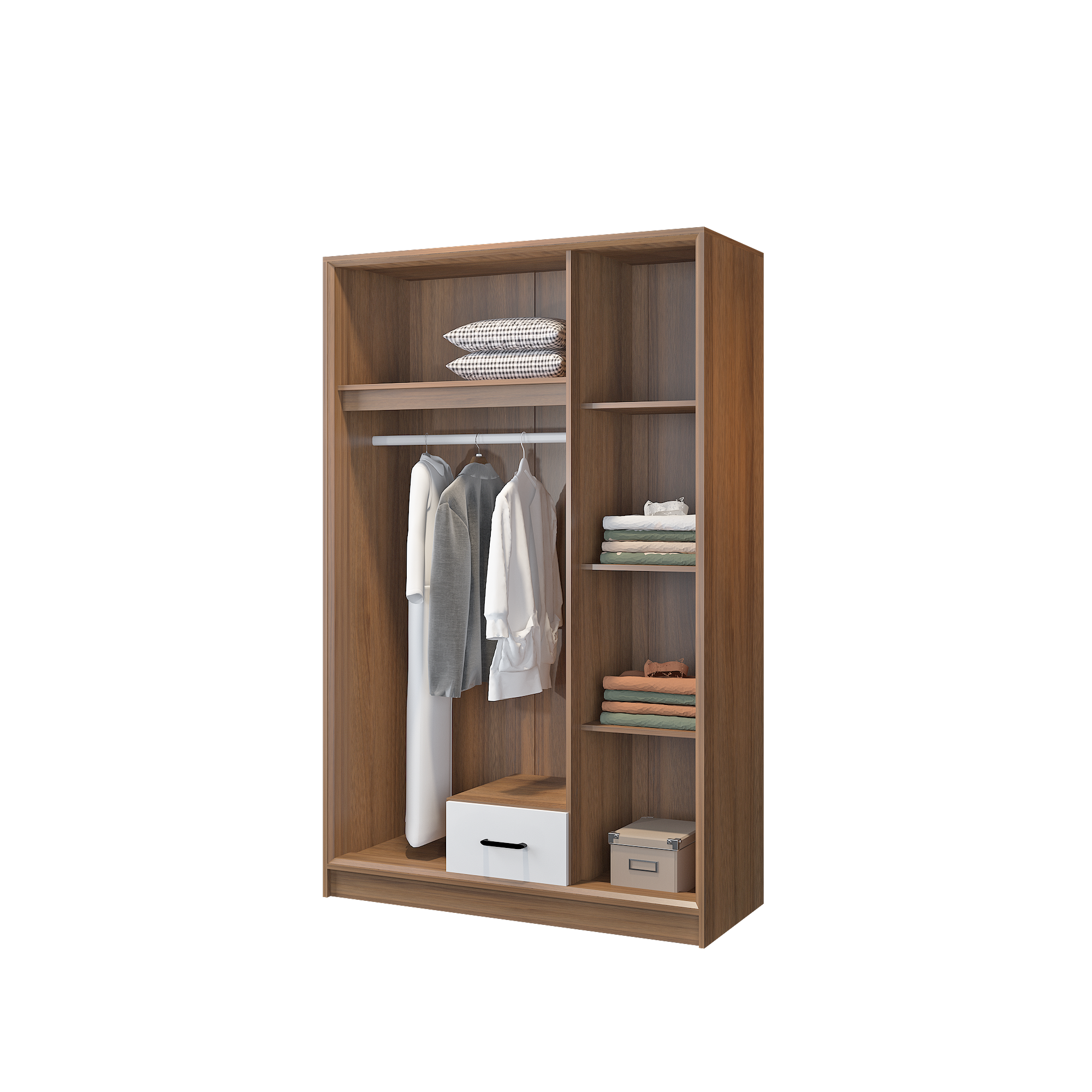 Lemari ini memiliki ketinggian 191 cm yang akan membuat baju gamis/long dress kamu tergantung lurus dan rapi. Selain itu, terdapat banyak kompartemen untuk menyimpan pakaian yang dilipat, handuk dan lain-lain.
