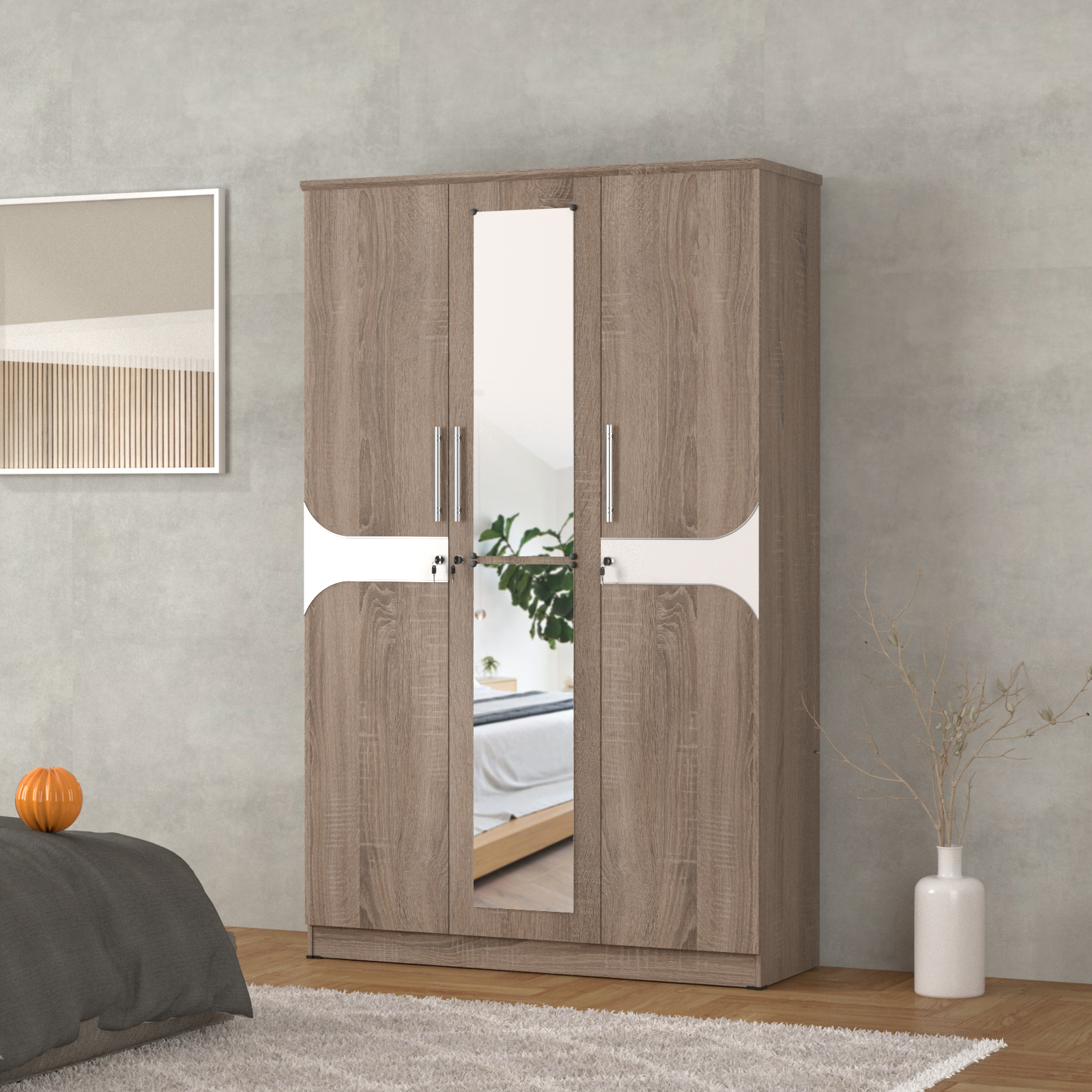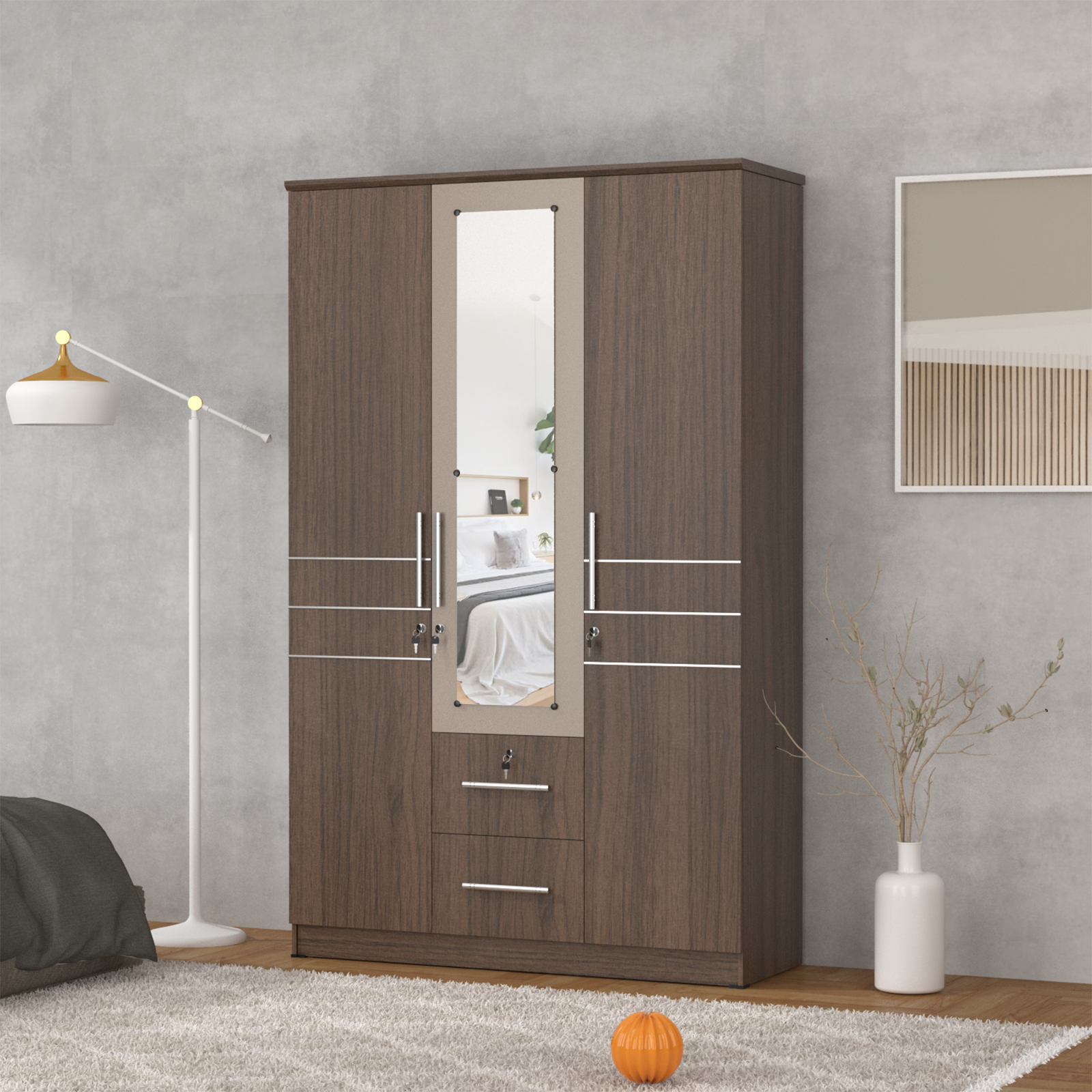 Lemari Aludra ini juga dilengkapi dengan cermin panjang dan kunci.