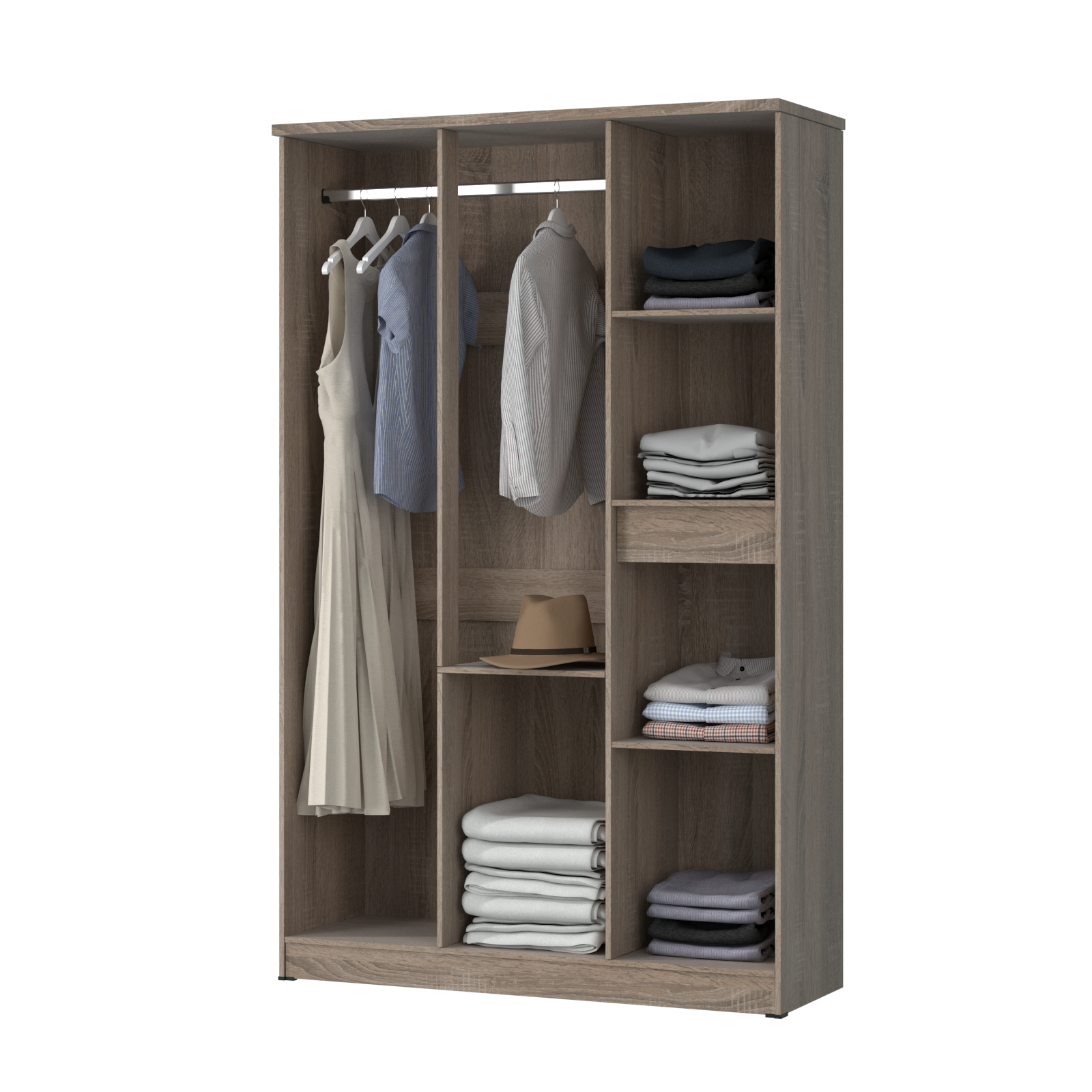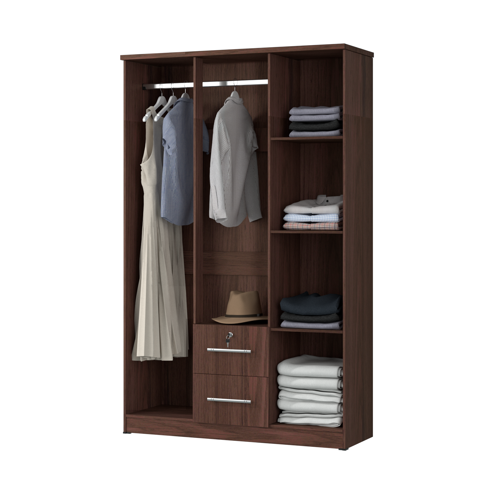 Lemari ini memiliki ketinggian 191 cm yang akan membuat baju gamis/long dress kamu tergantung lurus dan rapi. Selain itu, terdapat banyak kompartemen untuk menyimpan pakaian yang dilipat, handuk dan lain-lain.